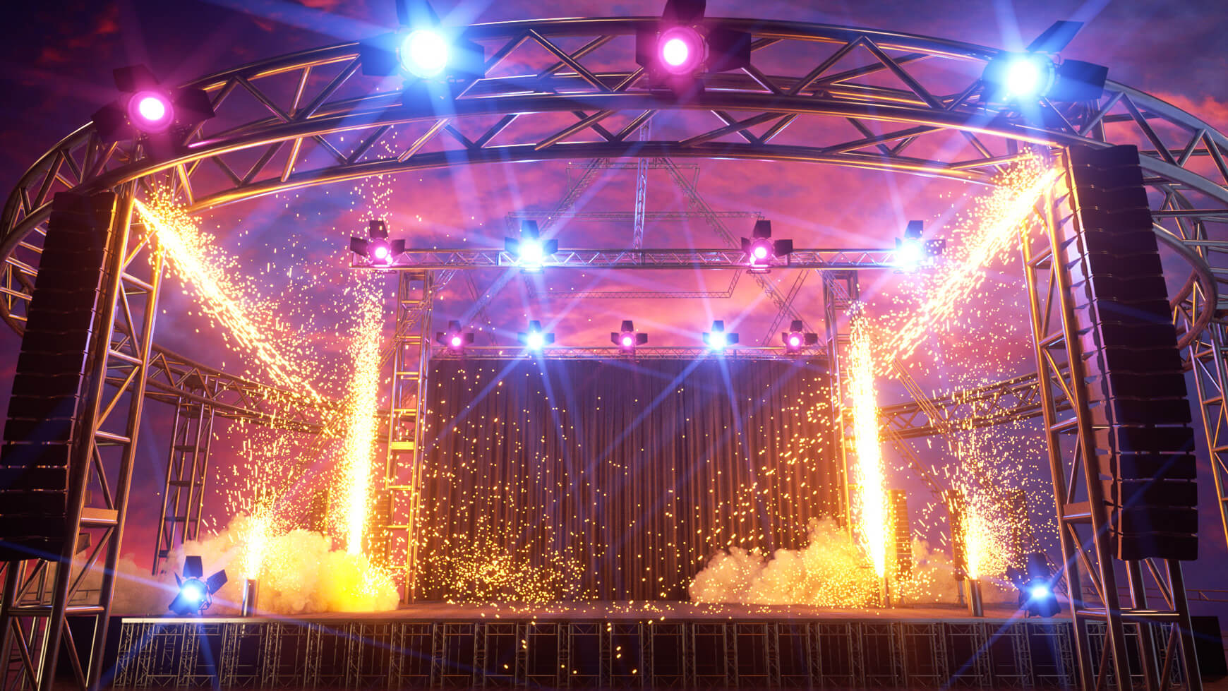 good pyro | Outdoor stage, Concert, Event stage
